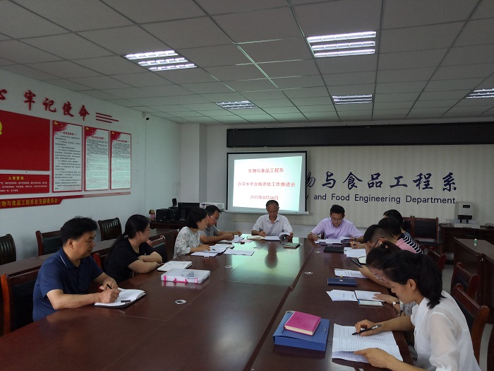 8月26日下午,生物與食品工程系組織開展期初合格評估工作推進會,生物與食品工程系主任蒲順昌主持會議,系合格評估工作小組成員參加會議。