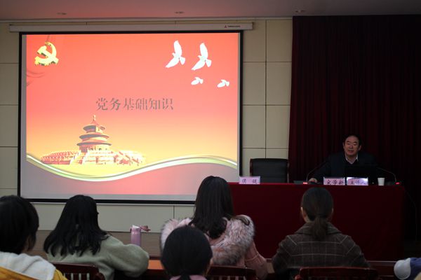 3月8日下午,金年会黨員發展對象培訓班開學典禮在勤政樓第一會議室舉行,共有84名學員參加典禮,校黨委組織部侯健同志主持典禮并作動員講話。