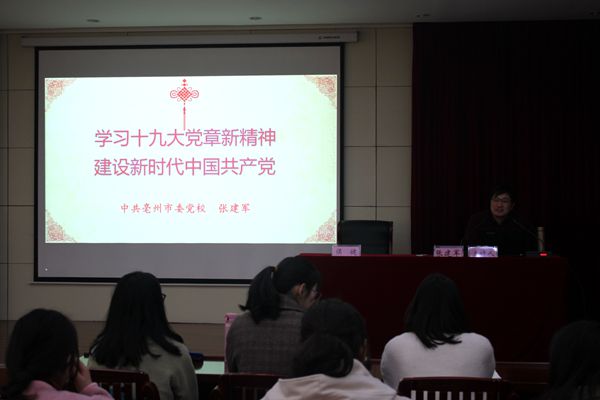亳州市委黨校馬克思主義基本理論教研室副主任張建軍副教授做專題講座:《學習十九大黨章新精神,建設新時代中國共産黨》