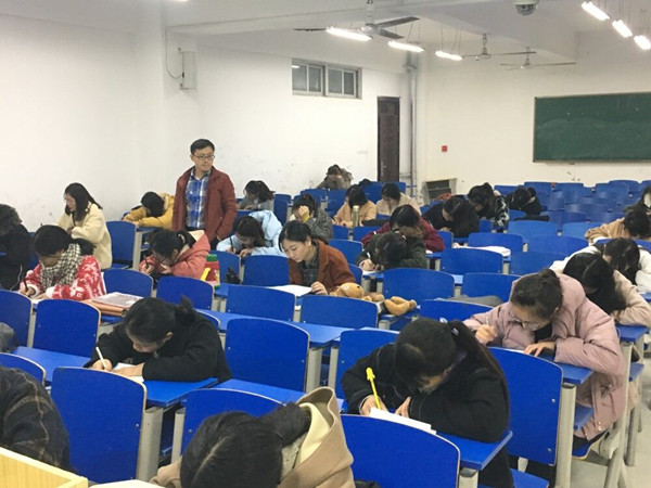 為檢驗新一批入黨發展對象理論學習的效果,進一步提升其理論素養和思想意識,11月29日晚,教育系在慎思樓C棟200南和300北教室舉行了第30期入黨積極分子培訓班黨課結業考試。教育系黨總支書記王振華擔任巡考,共計79名學生參加考試。